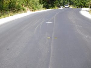 After the striping has been worn off, the thermoplastic markings remain visible, providing the traveling public and the IHD plow drivers with a reflective centerline.