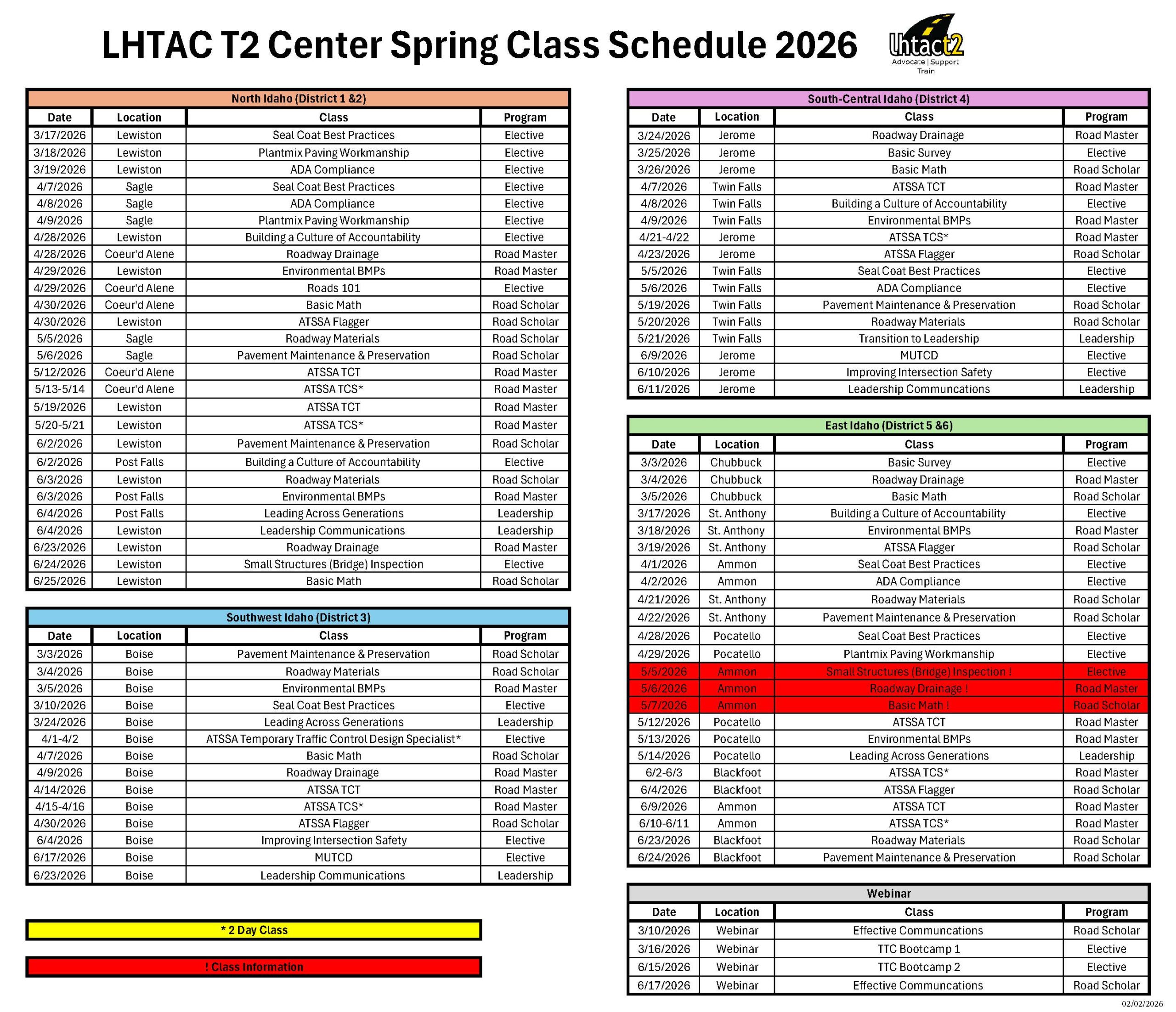 The LHTAC T2 Center is part of a national program known as the Local Technical Assistance Program (LTAP). We provide training and technical assistance to meet the needs of highway jurisdictions in Idaho.
